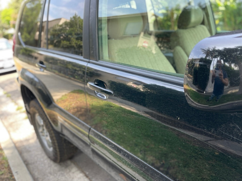 On the 2nd row doors, the trim will lift cleanly off the vehicle. On the front doors, you’ll need to work the length of the trim loose, then pull toward the rear of the vehicle. The front-most end of the trim is inserted into a small nook at the furthest forward point on the window.