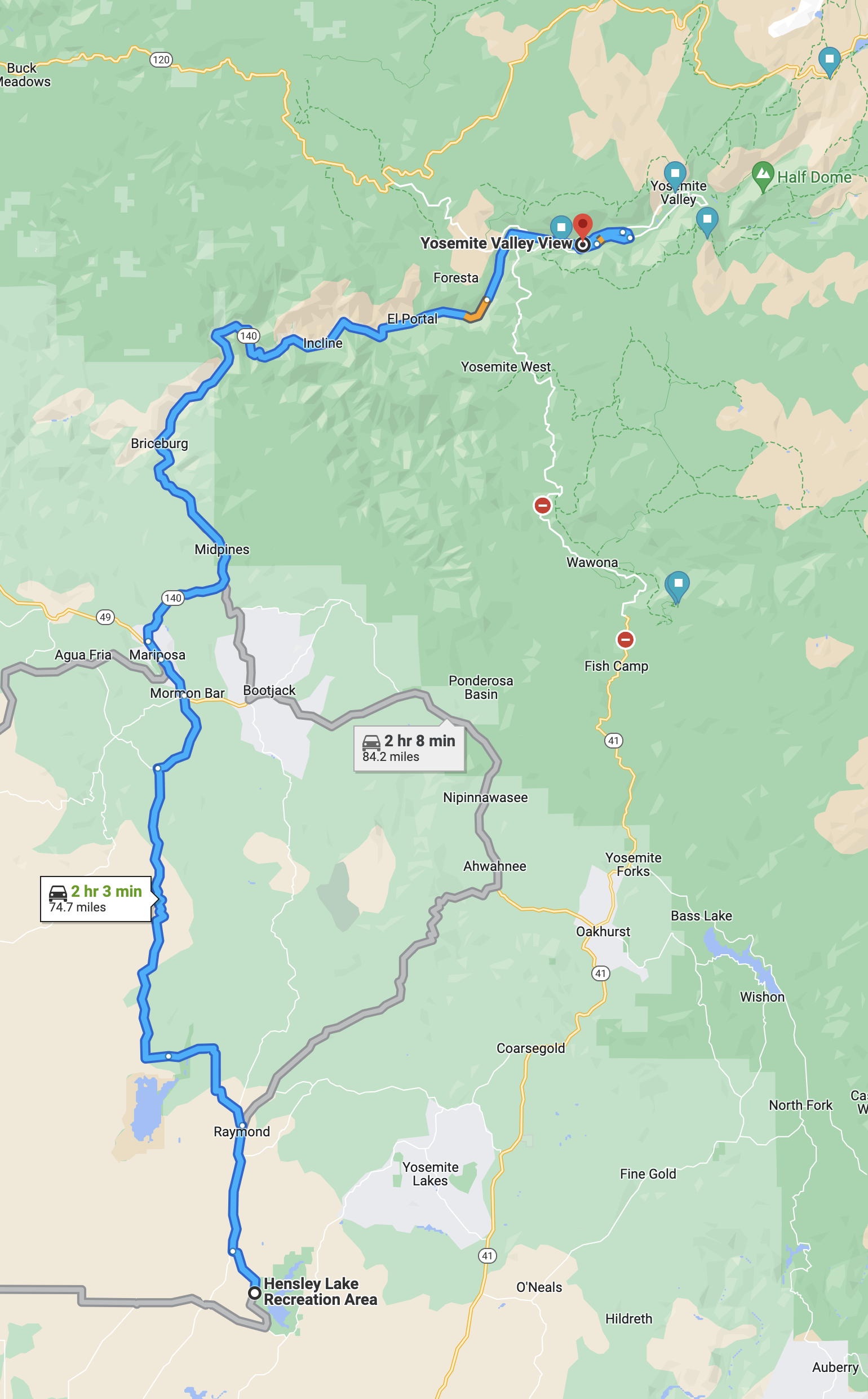 Womp womp (cue sad trombone). We immediately pulled over — at this point it was nearly 5pm — to figure out the situation. Low and behold, the Washburn Fire started the evening before right smack in the middle of Mariposa Grove. So much for that idea. After ten minutes of mildly frantic app hopping, we managed to book a campsite at the Hensley Lake Recreation area about 40 minutes away. Not exactly anything spectacular, we arrived to the sensation of standing in front of a giant hand dryer. But it would do.