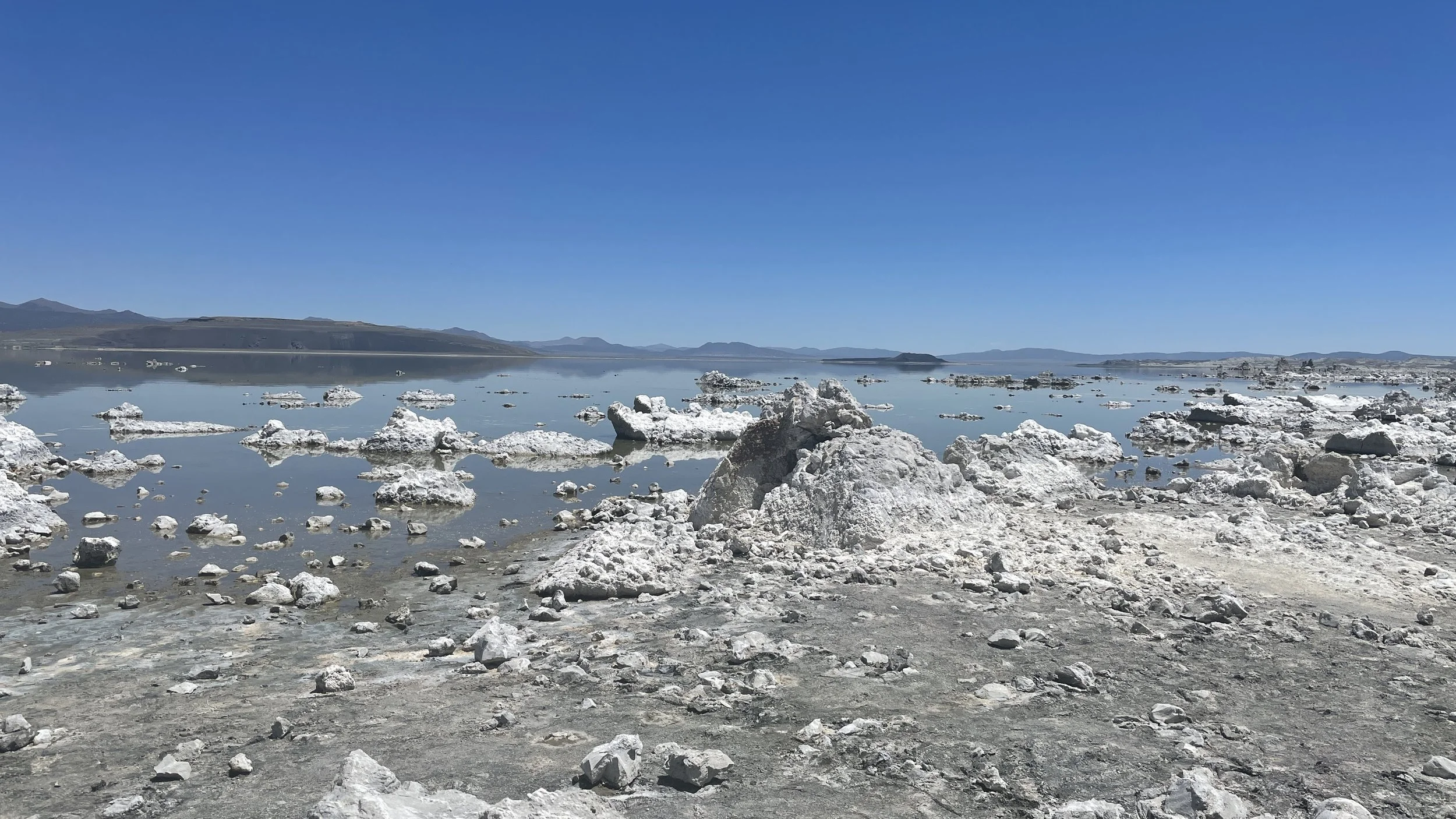 While not a whole lot to see, this seemed like a must stop at least once kind of venture. Instead of heading to the visitor center, we opted for the quick pull-off of 395 another mile or so down the road. That was a mistake. There’s some small tufa near that parking area, but the visitor center is the closest point to the most impressive tufa features on this side of the lake. With a pup in tow and temperatures in the 90’s, we opted to skip the hike around the lake’s edge and make this a short stop before hopping back in the basecamp rig.