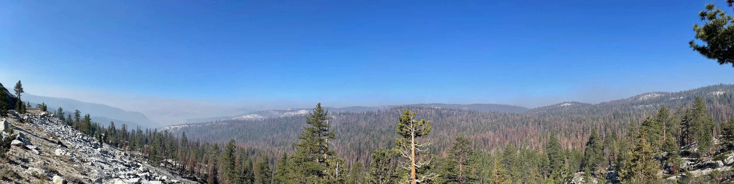 Eventually the view opens up and looks out toward Yosemite Valley across the high country.