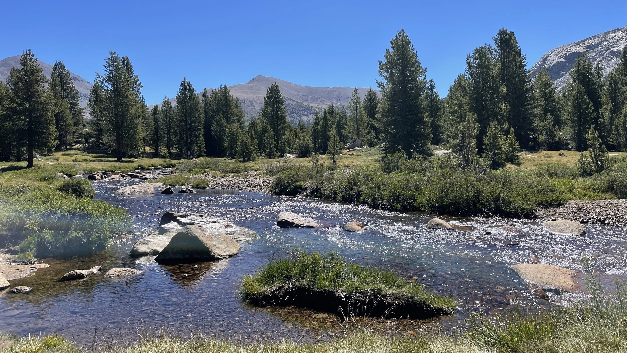 Olmstead Point is a can’t-miss stop along the way. Offering views all the way out to Half Dome in Yosemite Valley, they say you can see climbers ascending the Cables Route up the backside on a clear day. Needless to say, we didn’t have a clear day by any stretch, but the smoke did begin to clear as we moved further East. Eventually we were treated to crystal clear skies over pristine meadows and meandering creeks to finish off our Yosemite adventure.